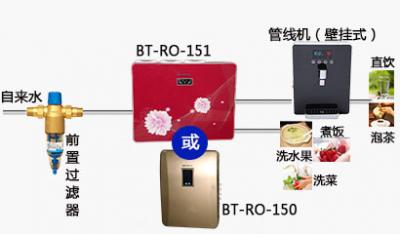 如果用戶不需要對生活用水進行凈化,主要想凈化飲用水,那么用戶可以考慮選購安裝在廚房的凈化產品,如純水機,這是把水凈化為直飲水的產品。鉑圖電氣BT-RO-151和BT-RO-150智能帶泵反滲透純水機,采用高壓脈沖模式,微廢水比例,過濾精度0