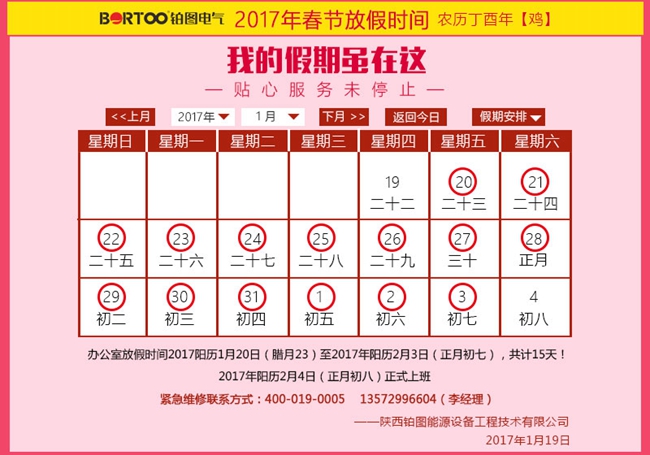 3、放假期間鉑圖電氣(中國)運營中心仍為客戶提供售后服務。