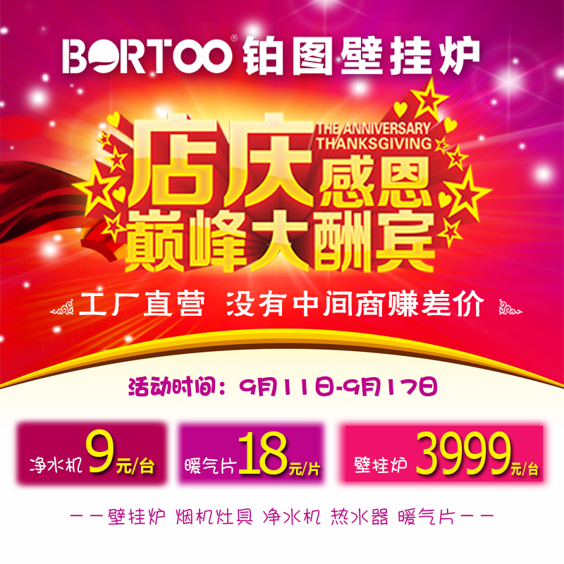 凡購買店內任意一款壁掛爐即可享受鋼制暖氣片18元/片限量搶購活動