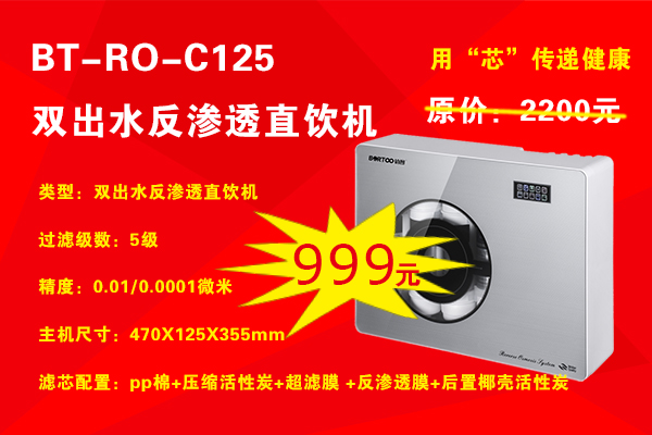 雙出水反滲透直飲機每臺僅需999元,僅限20臺。