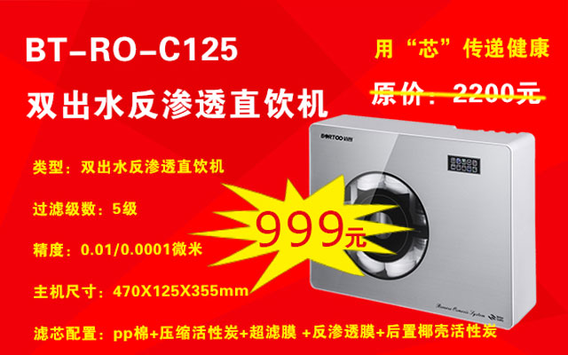 雙出水反滲透直飲機每臺僅需999元,僅限20臺。