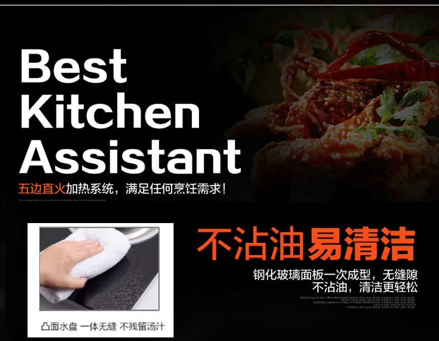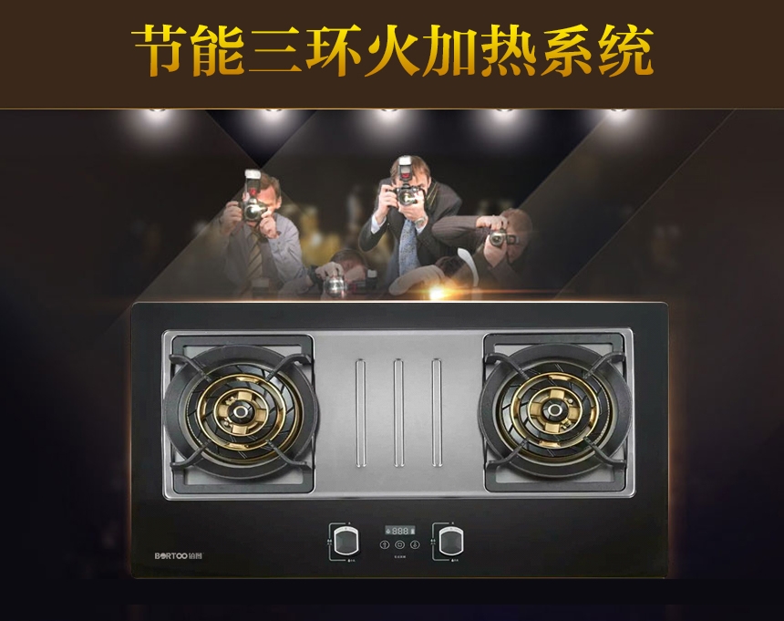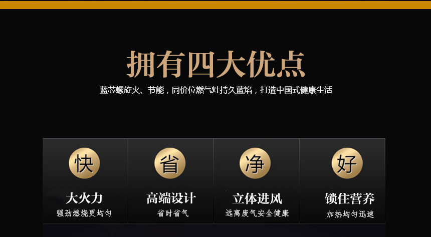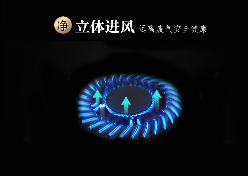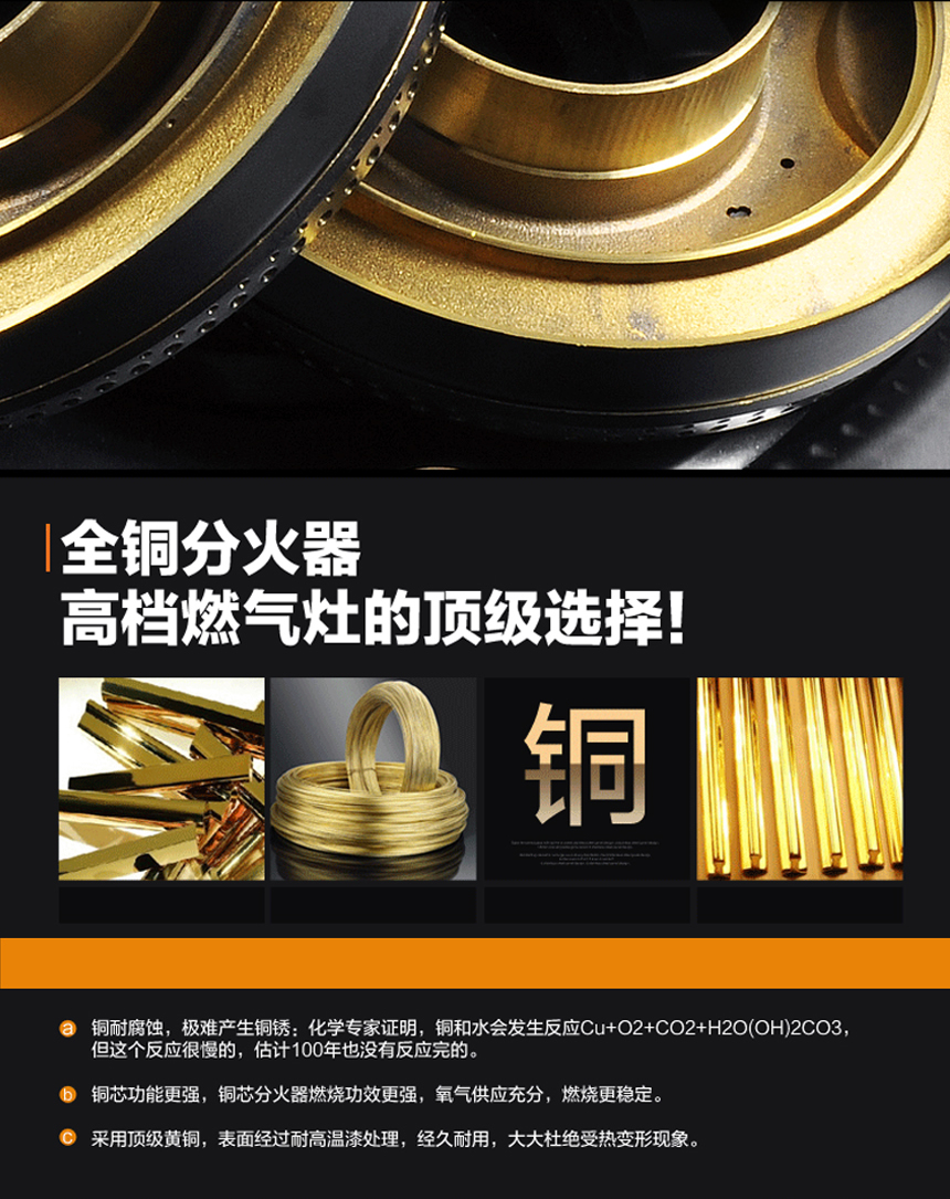 三段猛火蓋.純銅圈銅底座;聚能環鑄鐵爐架,連體不銹鋼水盤